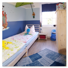 Kinderzimmer zwei Betten (90x200cm), Verdunkelungsrollo, Radio mit CD-Player